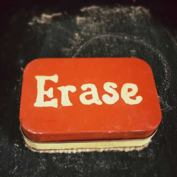 Oh, y ¿he mencionado que está hecho de materiales de reciclado casi en su totalidad? Dos Altoid (o similar) latas y restos de un viejo suéter conforman la estructura de la base y la almohadilla de goma de borrar. Un poco de pegamento para sostener cosas Junta, pintura bonita mirada y voilà! Usé pintura en aerosol naranja que tenía sobras de un proyecto anterior y de un simple título rotulado a mano para mi diseño, pero (naturalmente) puedes hacer tuyo con todo lo que diseño te gusta.