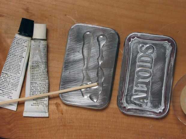 Utilizar epoxi parte 2 para unir la parte superior de las dos tapas. Arreglarlos para que sean perfectamente apilados con los lados de la bisagra alineados. (Ver imagen)