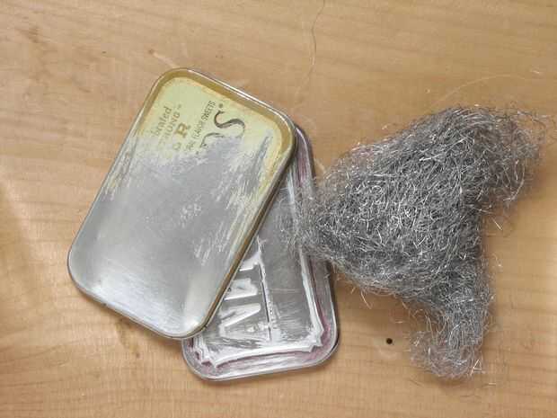 Utilizar lana de acero o papel de lija para quitar la pintura de las latas de la tapa. Si usted necesita las tapas de las latas de dos, que va sólo a utilizar la parte inferior de uno de ellos. Quitar la pintura de una de las bases de la lata. (Usted puede descartar la otra.)