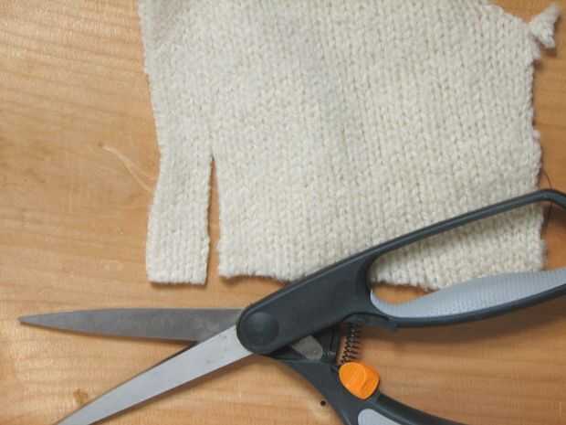 Primero: es crucial que usted corte las tiras de su suéter con la alineación correcta. Si tiene razón, que el cojín lucirá maravillosamente, incluso si el suéter comienza a desentrañar, el desván de la almohadilla de goma de borrar sólo conseguirá un poco suelto. Si sale mal, entonces obtendrás poco ribete hilo caída al usar el borrador. (Véase el cuadro para la alineación correcta) Quieres unos diez tiras de 1 "x 4" de la chompa.