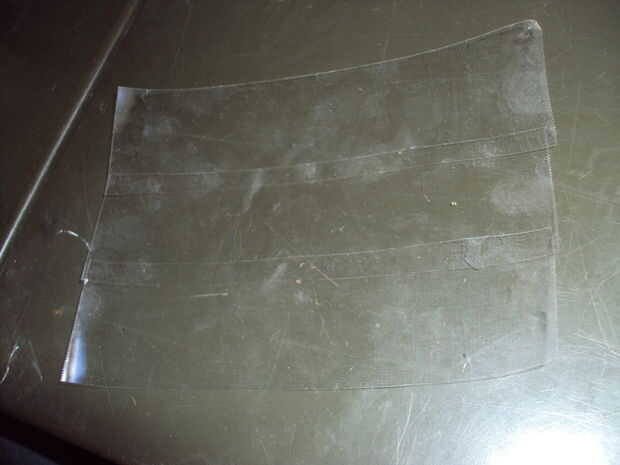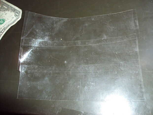 En primer lugar, cortar tres tiras de cinta, cada uno de aproximadamente 1/2 pulgada más largo que un billete de un dólar en cada extremo. Atentamente les pegan (lado pegajoso hacia arriba) para que superponga aproximadamente 1/4 de pulgada a 1/2 pulgada. Vea la foto si usted necesita un visual. Usted debe terminar con un rectángulo de cinta con un lado que es totalmente pegajoso y el otro no.