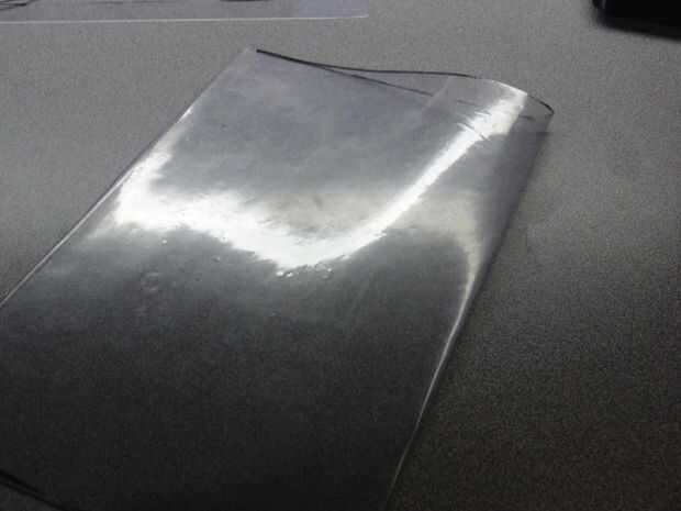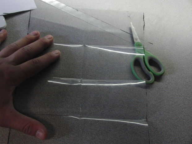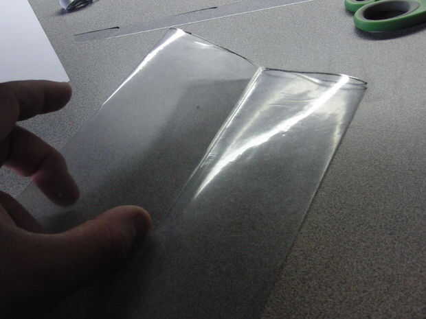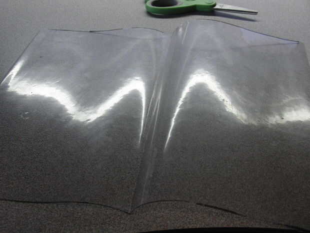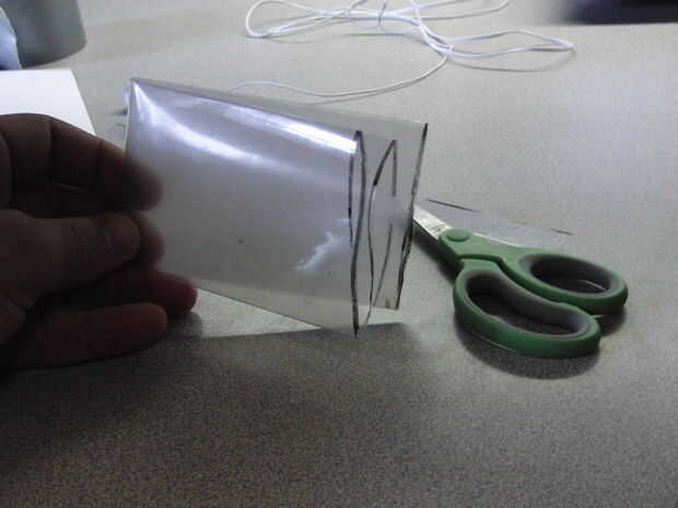 En este paso vamos a doblar dos veces el estilo de hamburguesa de plástico y luego doblar por la mitad para que tome la forma de una cartera.  Las fotos deben mostrarte cómo.  Nota puesto que estamos utilizando plástico transparente es difícil ver detalles en el plegamiento tan a partir del siguiente paso i demostrará con papel.