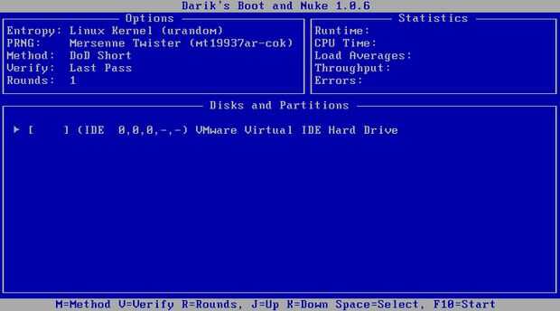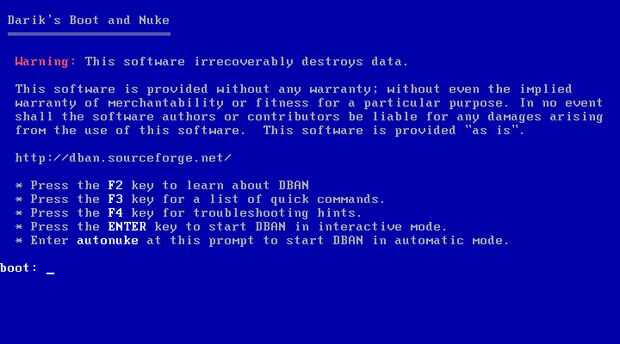 3) la pantalla principal de DBAN ahora debería estar aquí (ver imagen dos)