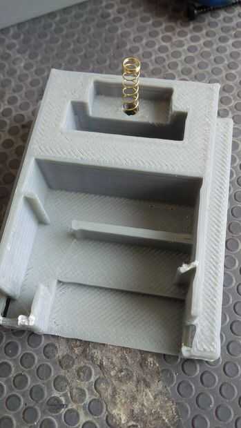 Las partes deben imprimirse de ABS ya que va ser pegadas posteriormente. La sección inferior adapta a la batería de Bosch. Tiene una sección de 1 mm empotrada que describe en la sección superior se pegado en lugar después de soldar en la interfaz de enchufe y contactos eléctricos de la batería Bosch. El seguro está diseñado para ser accionado por el resorte cargado cierre Bosch, a través de la parte superior con la ayuda de un resorte de pluma ligero bola punto para liberar el pestillo en la parte superior donde interconecta con la herramienta de Porter Cable.
