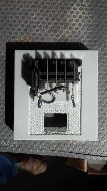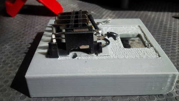El conjunto de enchufe es colocado como se muestra. Aliviar las áreas donde los cables se necesitan estar conectado con una herramienta Dremel. Ver pasos adicionales si esto no tiene sentido.