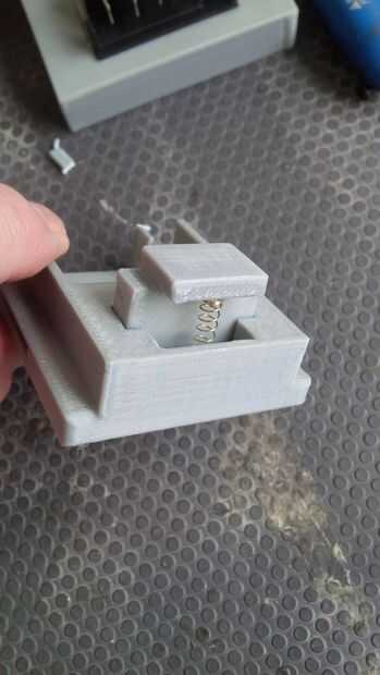 Encontrar un bolígrafo barato robar el resorte de él para su uso en el mecanismo de liberación del pestillo. Puede que necesite el agujero antes de instalar el resorte de la persecución.