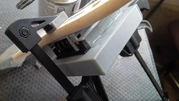 Use un cepillo pequeño para las áreas que se fusionan entre las secciones superiores e inferiores. Tenga cuidado alrededor de la zona del pestillo para asegurar el no slop cualquier pegamento en el canal donde el seguro tendrá que ser libre para moverse.