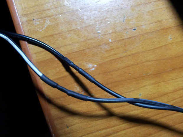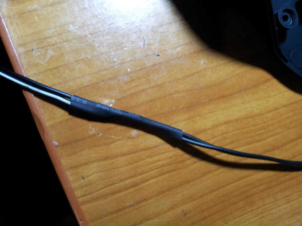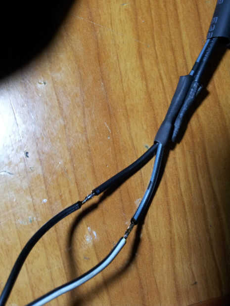 Había soldado el conector macho para el cableado de la pared del enchufe de carga. Nuevo, blanco con negro - Vcc, negro alambre - tierra.