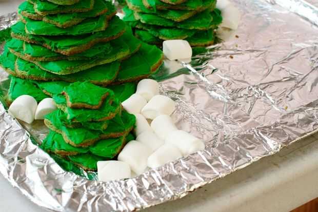 Llenar detrás de los árboles y en espacios cerrados entre los árboles con mini-marshmallows sin cortar.