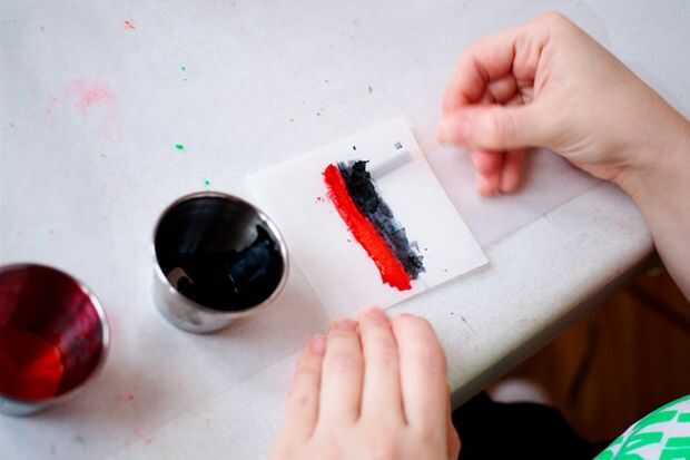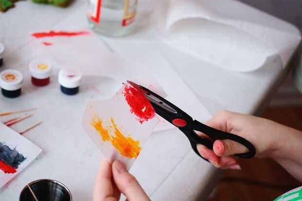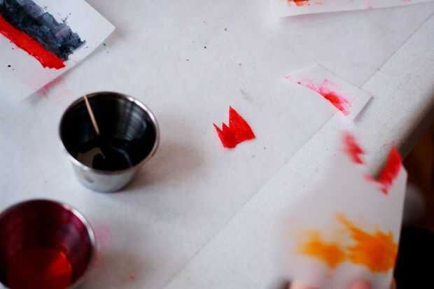 • Para hacer fuego, fina un poco de rojo y un poco de color naranja y manchas en el papel de oblea.