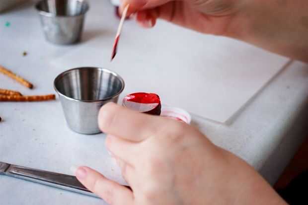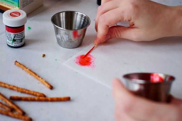 • Un palito de pretzel fue envuelto en papel de oblea que fue pintado de color rojo para crear un mango de hacha.
