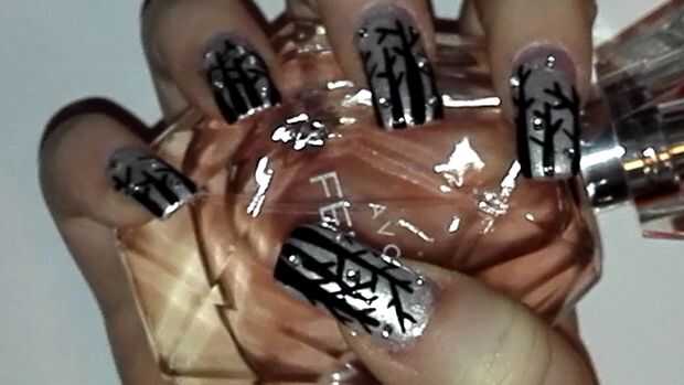 Hola bellezas ♡Estoy nuevamente con otro diseño de uñas.Paso 1: Pinta las uñas Primero pinte su dedo meñique y pulgar con capa negra. Luego pintar su dedo anular y puntero con bata blanca y el dedo corazón con la brillante capa de pintura.Paso 2: Dib