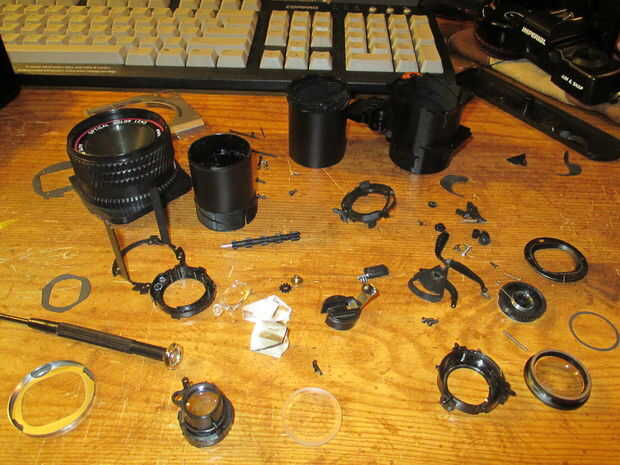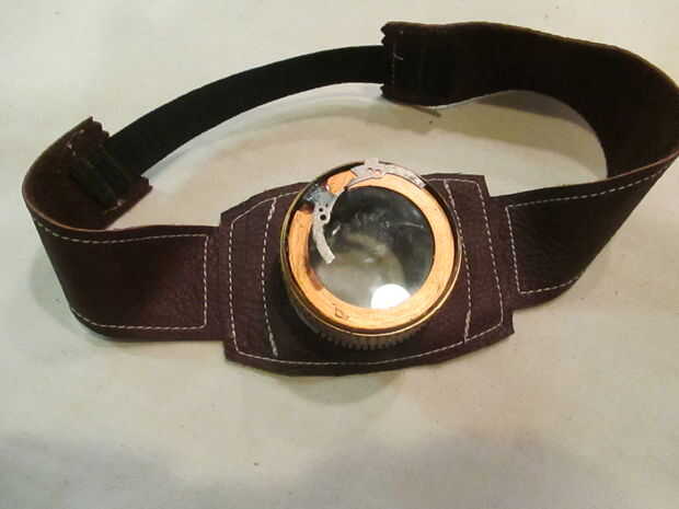 6. he combinado una de las lentes en el unidad de enfoque/barril y acuñan una pieza en servir mi andamio para lentes adicionales. Usé algunos cuero y elástico para crear la venda para mi unidad de monóculo.