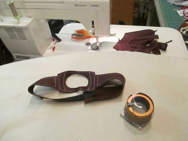 7. usa E6000 para pegar pieza de cuero. Las líneas de puntada no todo funcional, sobre todo decorativo.