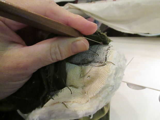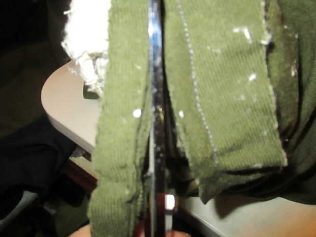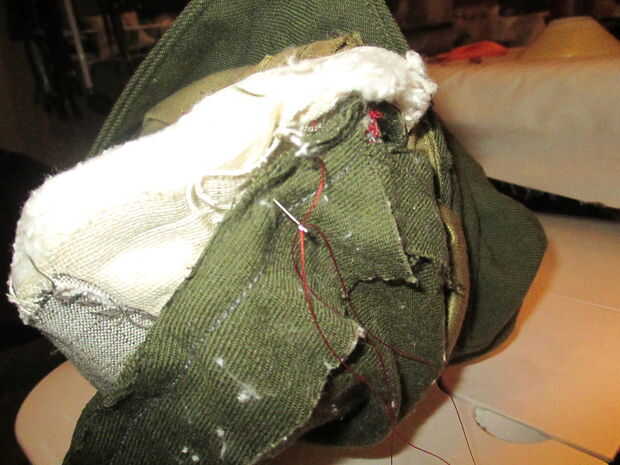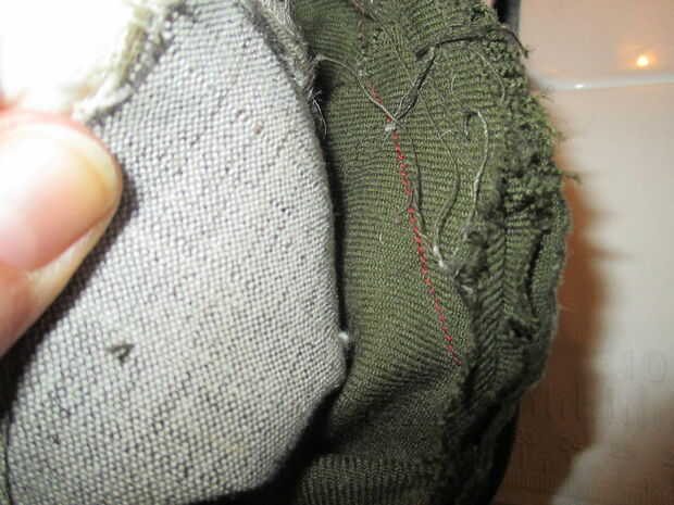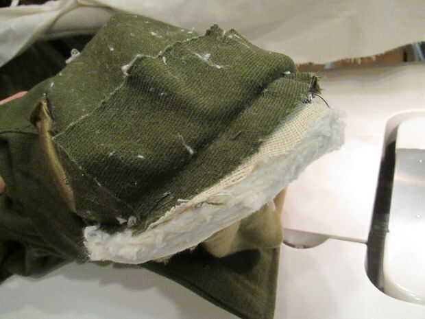Me abrió el forro de la manga y tiró hacia fuera de la zona del hombro de la lana. Puedes ver todo el bateo de hombro. Yo había separado, entonces había cosido alrededor de una pulgada de la línea original de la costura del hombro en la parte superior y disminuyó gradualmente el cambio de margen de costura a alrededor de la mitad de la sisa de la manga, en la parte delantera y trasera. Luego recortar el exceso y devengarán el bateo en.