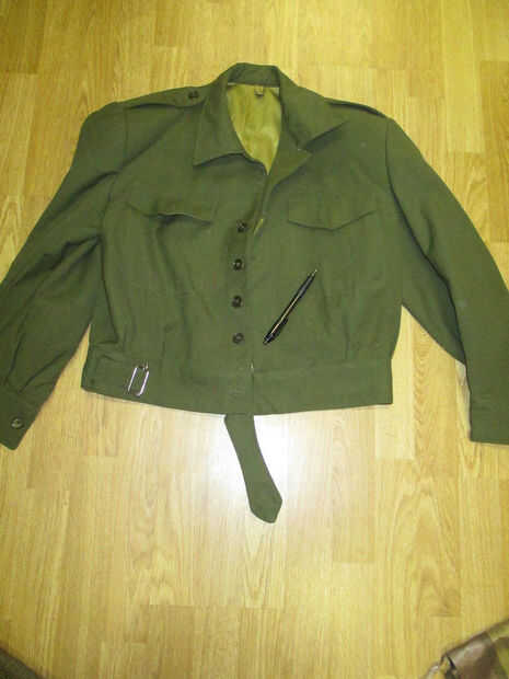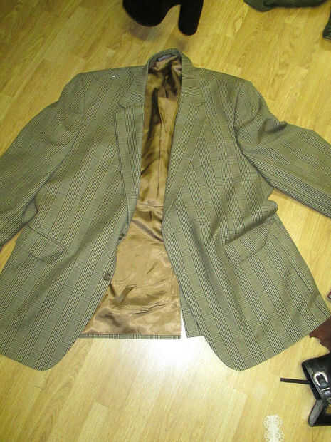 Empecé con un bombardero de lana verde y una chaqueta marrón de cuadros.