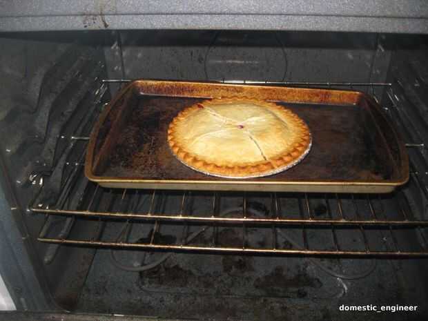 Primero lo necesario para cocinar el pastel. Mina dijo a poner pastel congelado en una bandeja y hornear durante 1 hora. Usted podría comprar una tarta ya horneada, o hacer uno desde cero, pero este pastel estaba a la venta.