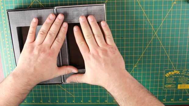 Tomar sus dos partes movibles terminados y asegurándose de que los imanes terminan lejos de la tira de centro, inserte los dos en las tapas.
