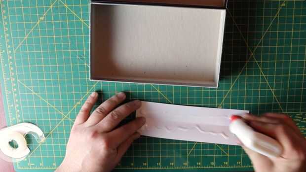 Pegue la pieza de tira a las tapas y mantenga en lugar bastante tiempo para que el pegamento fijar la tira.