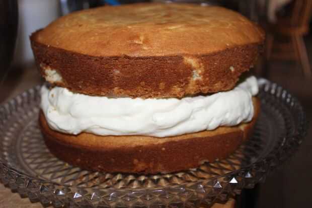 Añadir la crema batida / mezcla de pudín sobre la primera capa del pastel.