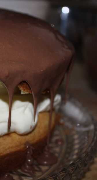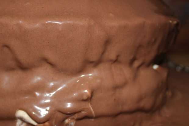 Por último, vierta el glaseado en el pastel y deje que se cubren por goteo hacia abajo
