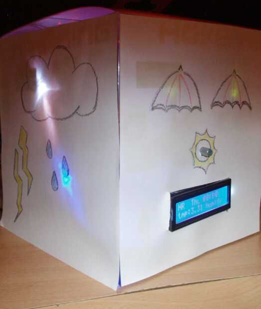 • encender LEDs según el tiempo (LED amarillo colocado en la imagen del sol va en si es un día soleado, azul LED ir y fuera según cómo mucho llover etc..)