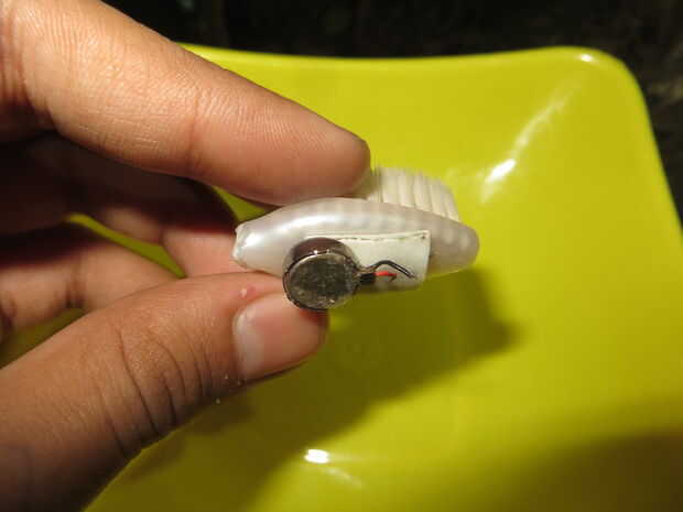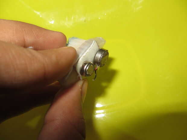 Material:1 Brushtop2 Motor de la vibración3 cinta aislante deCélula de batería de litio 4.CR2032Paso 1: Material1 Brushtop2 Motor de la vibración3 cinta aislante deCélula de batería de litio 4.CR2032Paso 2: ConfigurarLa primera cinta el motor en la p