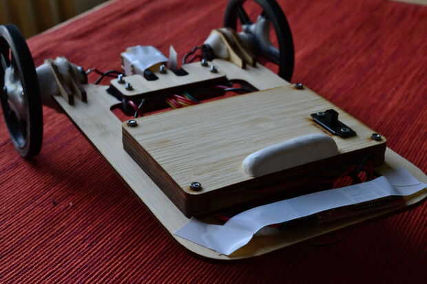 Artbots famoso es divertido crear y ver dibujar. Una de las formas más comunes de les alimentación es utilizando un circuito simple con una batería y un motor de CC con un peso de compensación para crear vibración. El centro de equilibrio del motor h