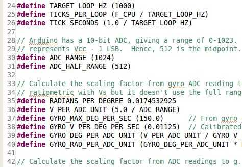 La constante GYRO_V_PER_DEG_PER_SEC define cuánto la salida de su particular giro cambia de un cambio de un grado por segundo en tasa de rotación. Me pareció que mina al final de la curva de bell en la hoja de datos.