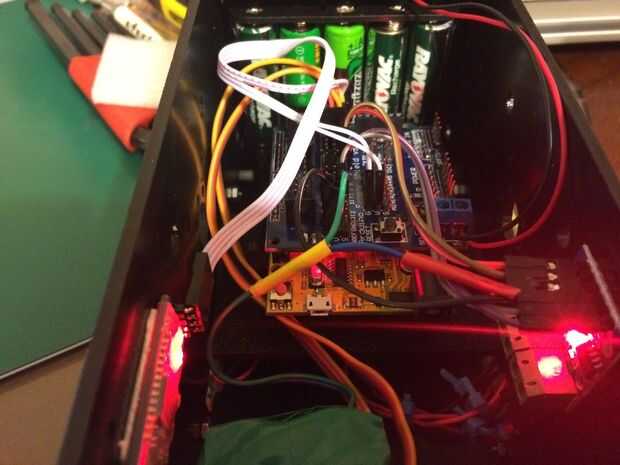Conecte los cables de alimentación de los 5 'aa' (u otros pack de 6v) batería al borne de tornillo de alimentación del protector del sensor: