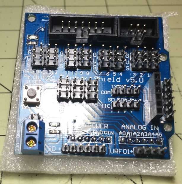 -Tome el escudo UNO y Sensor de V5 y acóplelos.
