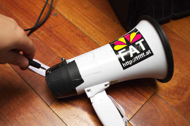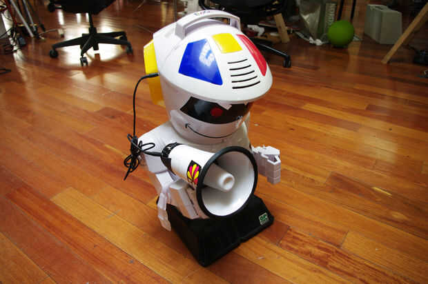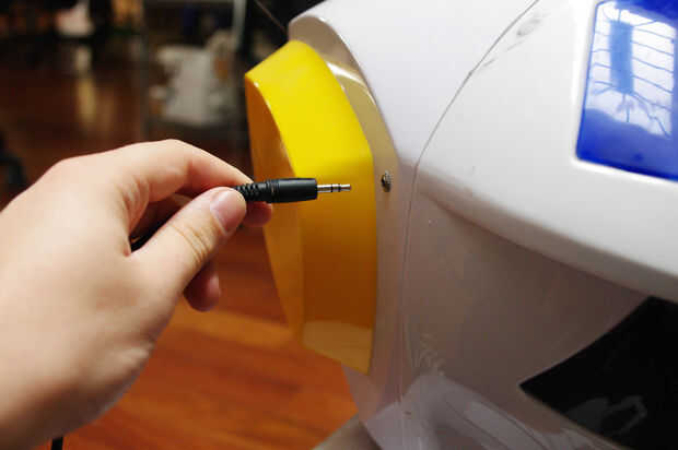 Conecte el puerto de salida de audio de tu robot al megáfono. Programar su robot para decir lo quiera. Esta es la oportunidad del robot para ser escuchado.