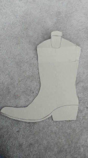 me encanta cargadores de vaquero, y mientras que poseen numerosos pares de cuero, esta es la primera posee en la cartulina. Es muy especial para mí porque me hice este. La bota de vaquero fue inspirada en un proyecto de diseño en el que nos dieron la
