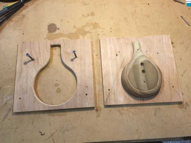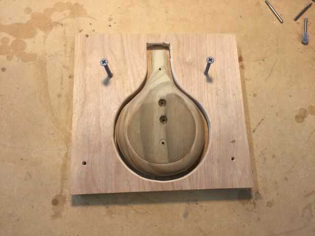 En una de las piezas, recortar el perímetro del matraz con una sierra de calar teniendo cuidado de mantener el interior intacto de la pieza. El interior pieza debería ser glued\screwed a la 2 º pieza cuadrada de madera.