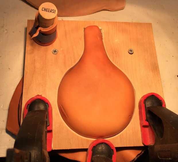 De la abrazadera en su lugar y dejar que seque durante la noche. Repetir para la segunda pieza de cuero.
