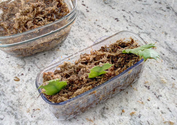Introducir las plantas y construir musgo, suelo alrededor para asegurarlos en su lugar.