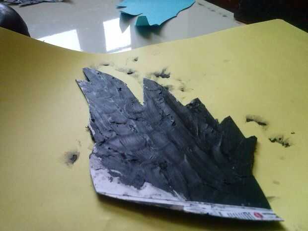Después de una hora o así puede utilizar el resto de la sugru para cubrir las espaldas de tus alas finas. Desde las puntas de las alas y vamos hacia atrás. Dependiendo de cómo usted está colocando las alas en sus zapatos, puede dejar algún cartón expuesto al final.