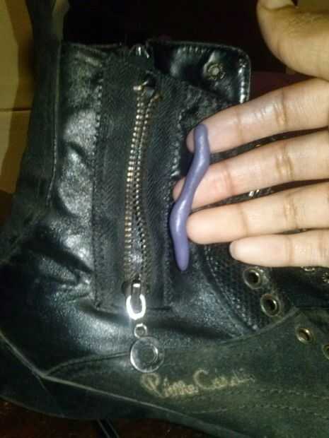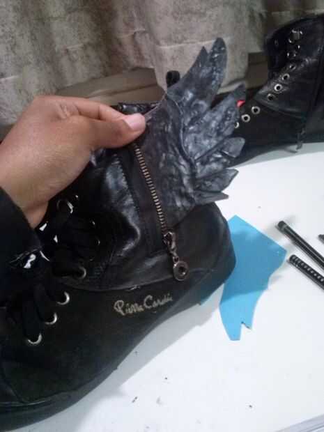 Usando el sugru de tus alas, rodar algunos sugru en un gusano gordo (yo escogí púrpura para coincidir con los trabajos de reparación que hice en las suelas de mis zapatos). Coloque el sugru en la parte posterior de su ala o en su calzado si hay una grieta que puede colocarlo en. Pegar el ala en con esto. Recorte el exceso. Repita para el otro cargador.