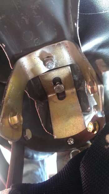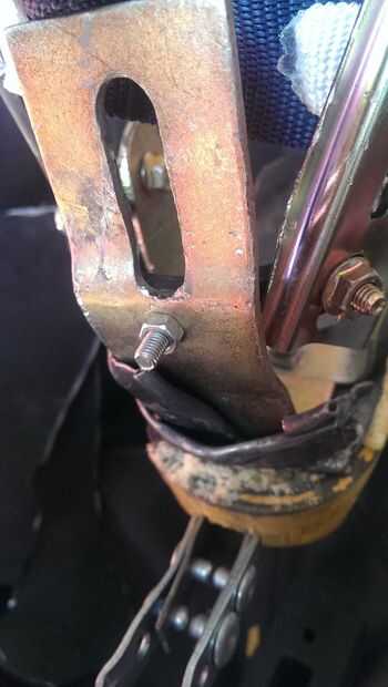 Por lo tanto, para detener esto. tomar una tira de acero de 3cmX22cm y encontrar el centro. Perfore un agujero de 10mm sin embargo, que se alinee con el orificio de 10mm por debajo, en el zapato. Luego, mida el ancho del pie, lo reducir a la mitad y doblar el acero casi 90 grados eso distancia de la perforación a cada lado, haciendo una forma de "U".