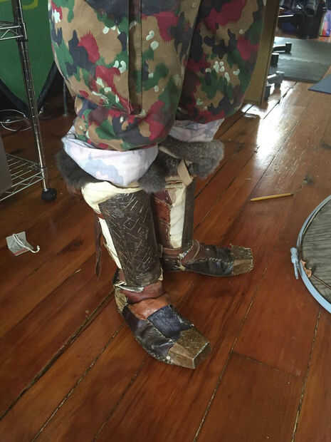 En cuanto a materiales, vas a necesitar un cuero muy grueso, algunos medio cuero, algunos cuero fino y paño pesado. en cuanto a la cantidad, pues es difícil decirlo exactamente. Te sugiero colocar el patrón sobre la piel para asegurarse de que usted puede conseguir todas las piezas fuera de él. Usted también necesitará cuero suministros de costura, unos remaches de trabajo del cuero, algo afilados para cortar el cuero, y unos 40 mitad pulgadas clavos.
