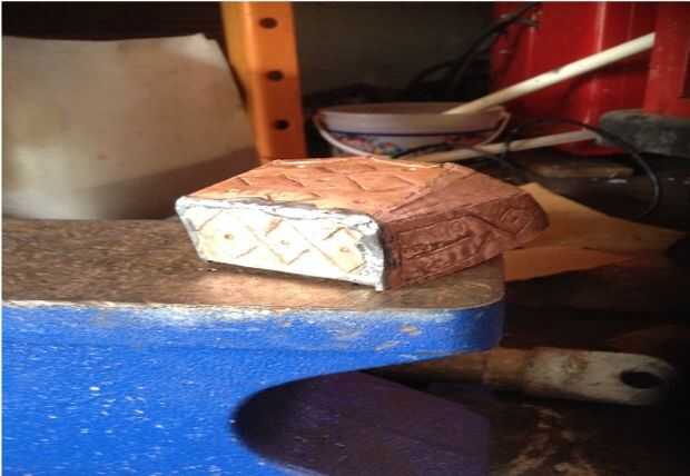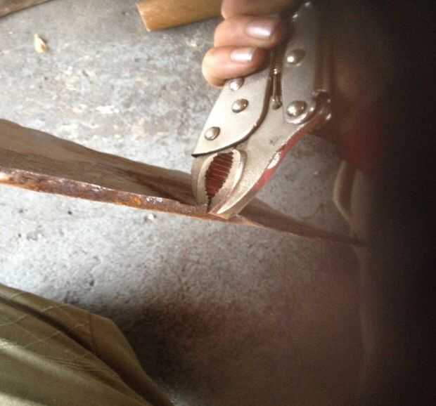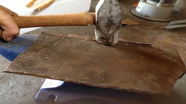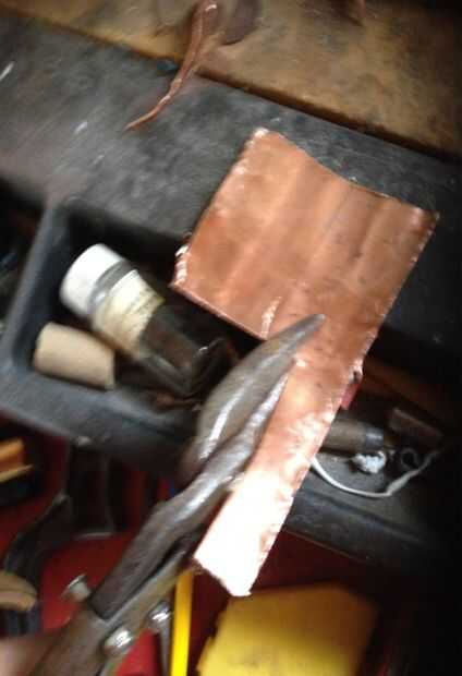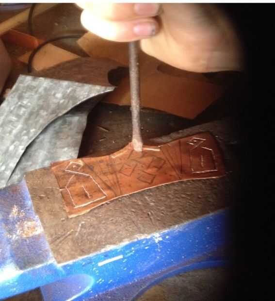Después de cortar las piezas de la placa del dedo del pie, uso que una cabeza plana y un martillo y libra cualquier tipo de diseño le antoje, después de terminar la talla de los patrones en ellas, Martille las placas en forma y cantidades de soldadura se aplica a los bordes.