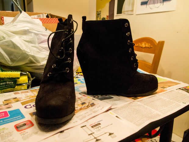¿qué se obtiene si se mezcla y suéter viejo, algunos baratos zapatos planos y un montón de pegamento caliente? Botas de suéter, eso es lo que!Paso 1: Las fuentes Para hacer tus botas, usted necesitará un suéter voluminoso grande con grandes mangas bi
