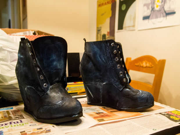 ¿qué se obtiene si se mezcla y suéter viejo, algunos baratos zapatos planos y un montón de pegamento caliente? Botas de suéter, eso es lo que!Paso 1: Las fuentes Para hacer tus botas, usted necesitará un suéter voluminoso grande con grandes mangas bi