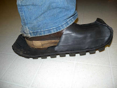 me cansé de los pedales de mi bici coger mis cordones, así que decidí zanja mis cordones e ir para otra cosa. Terminé con el uso de cámaras de aire para convertirlos en slip-ons. Extienden hasta para poner el pie en y estirar hacia atrás firmemente.