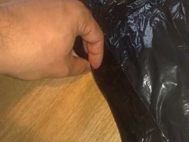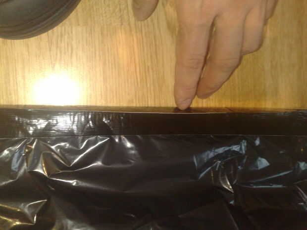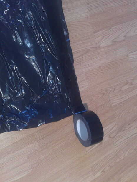 La razón, por qué creé el túnel es para la cadena, que se llevará a cabo el bolsas negras en las piernas. Si simplemente doble el extremo de la bolsa negra y ponga cinta sobre él... la cadena (tirando) podría dañar la bolsa - y que no mantendría juntos.