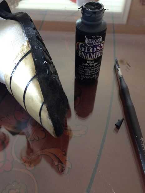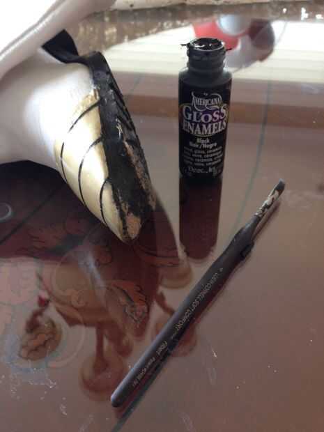 Tomar su pintura esmalte negro y cepillo a lo largo del borde y la parte inferior de la bota hasta que todas las partes decoloradas se cubren para arriba y la transición es suave.