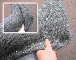 Coser un conjunto de guantes sin dedos de suéter reciclado