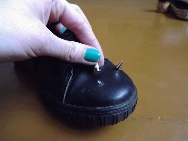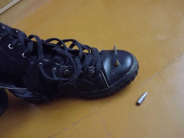Así que tome la parte inferior de la espiga y ponerlo a través del orificio. Después en la parte superior de la espiga (que es el punto sí mismo) y atorníllela firmemente juntos. Este es donde he usado el destornillador pequeño - lo utilizado desde el interior de la bota. Bueno, no fue fácil, pero valió la pena.