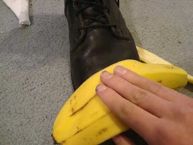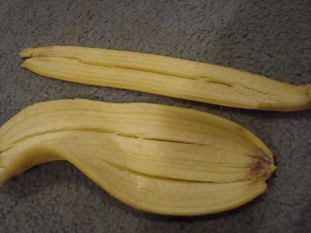 Entonces coge la cáscara de plátano y empezar a frotar ligeramente su arranque.