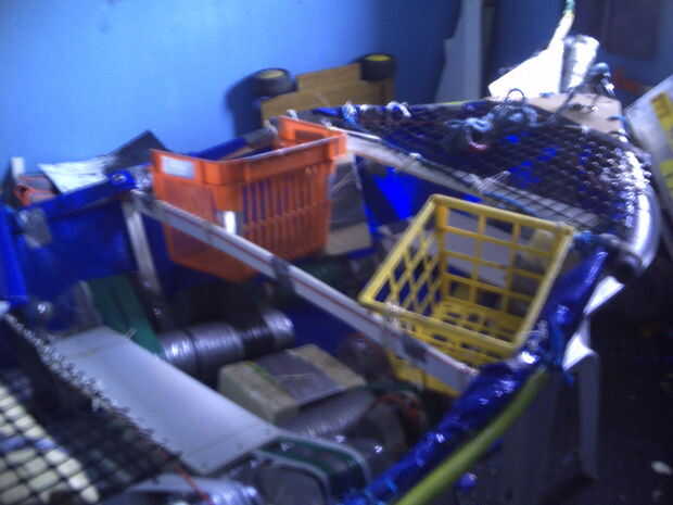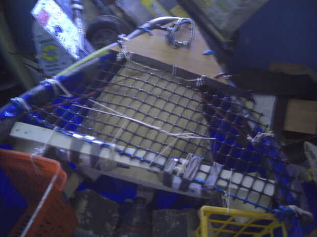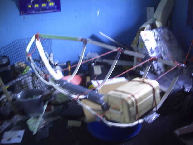 botellas de jugo usados para la flotabilidad/flotación. También construyó un carro para transportar el bote y también estoy planeando hacer una balsa con tubo de plástico y cable/conducto cinta que podrá ser llevado en uno de mis remolques de bicicleta casero 2. El bote creo que pesa sobre